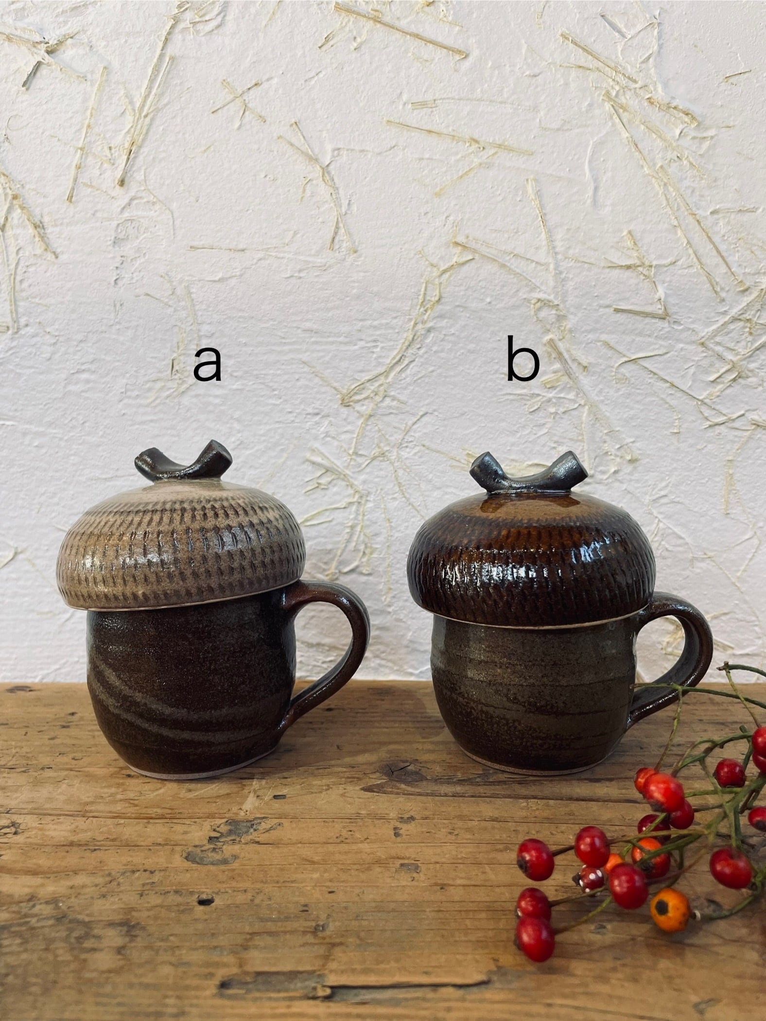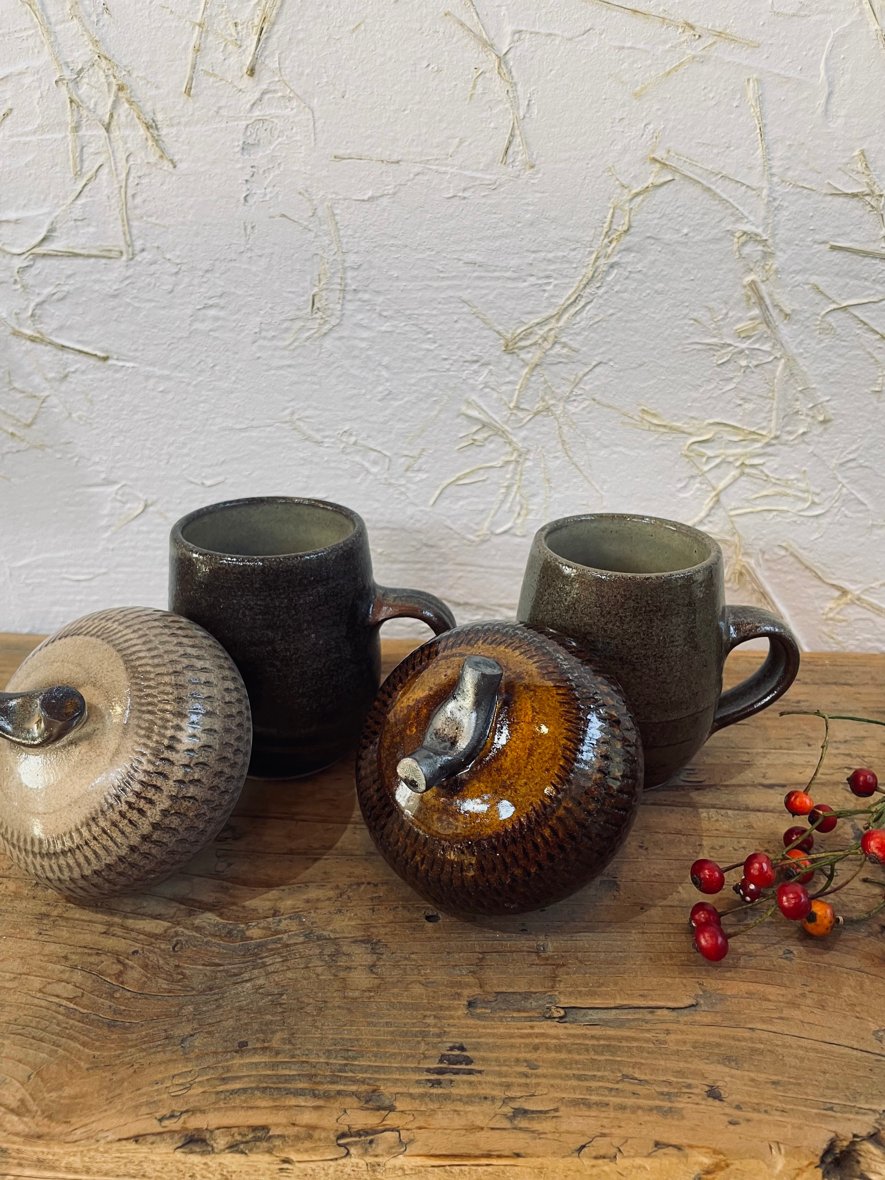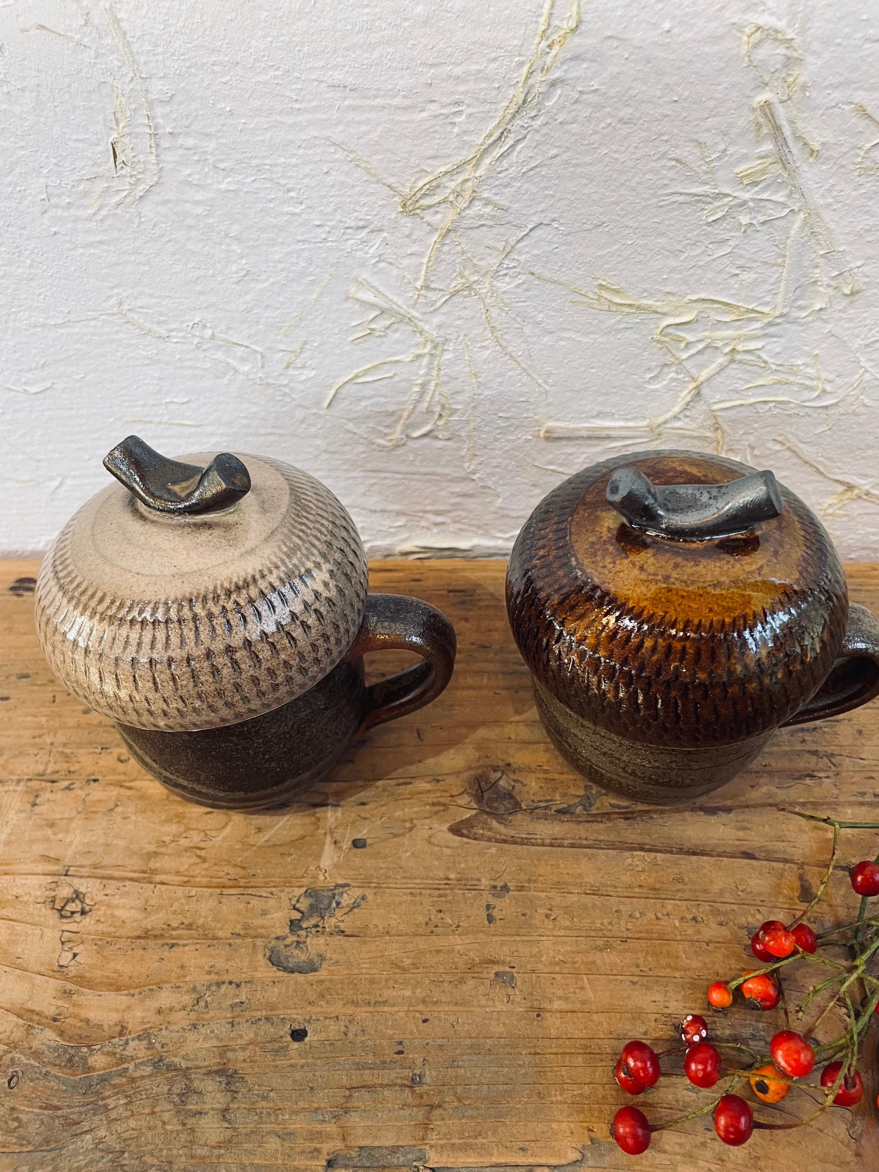 小石原焼 蓋付きマグ ドングリ