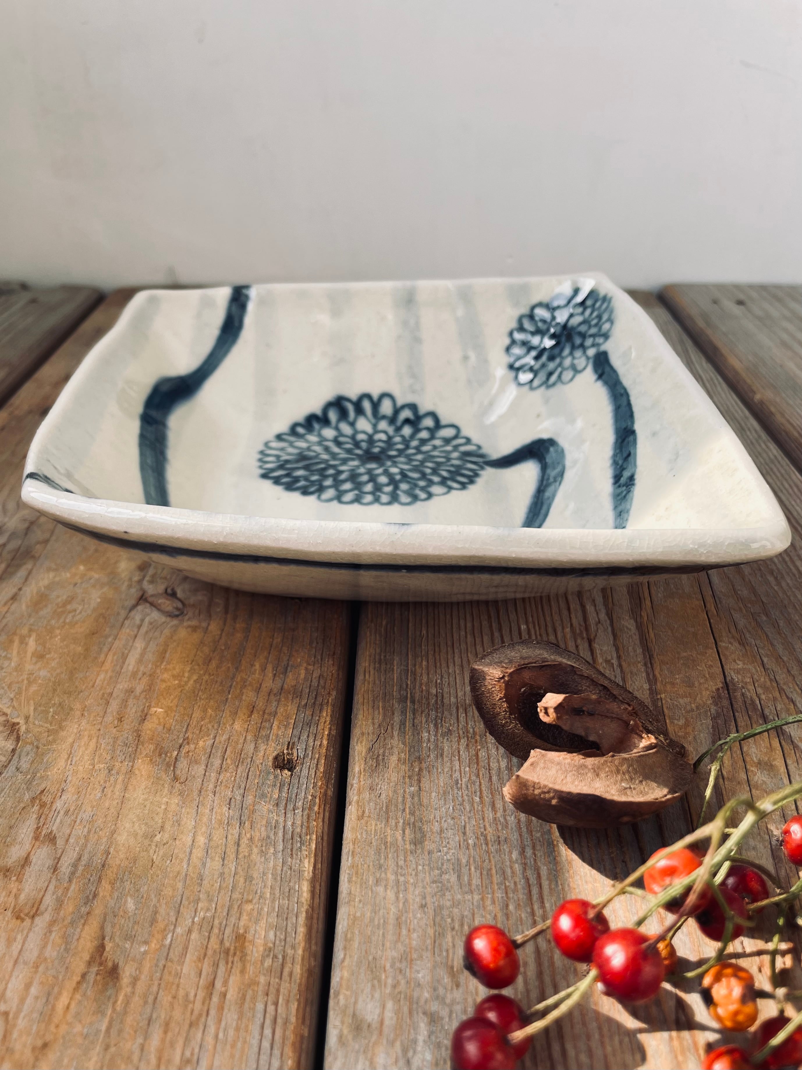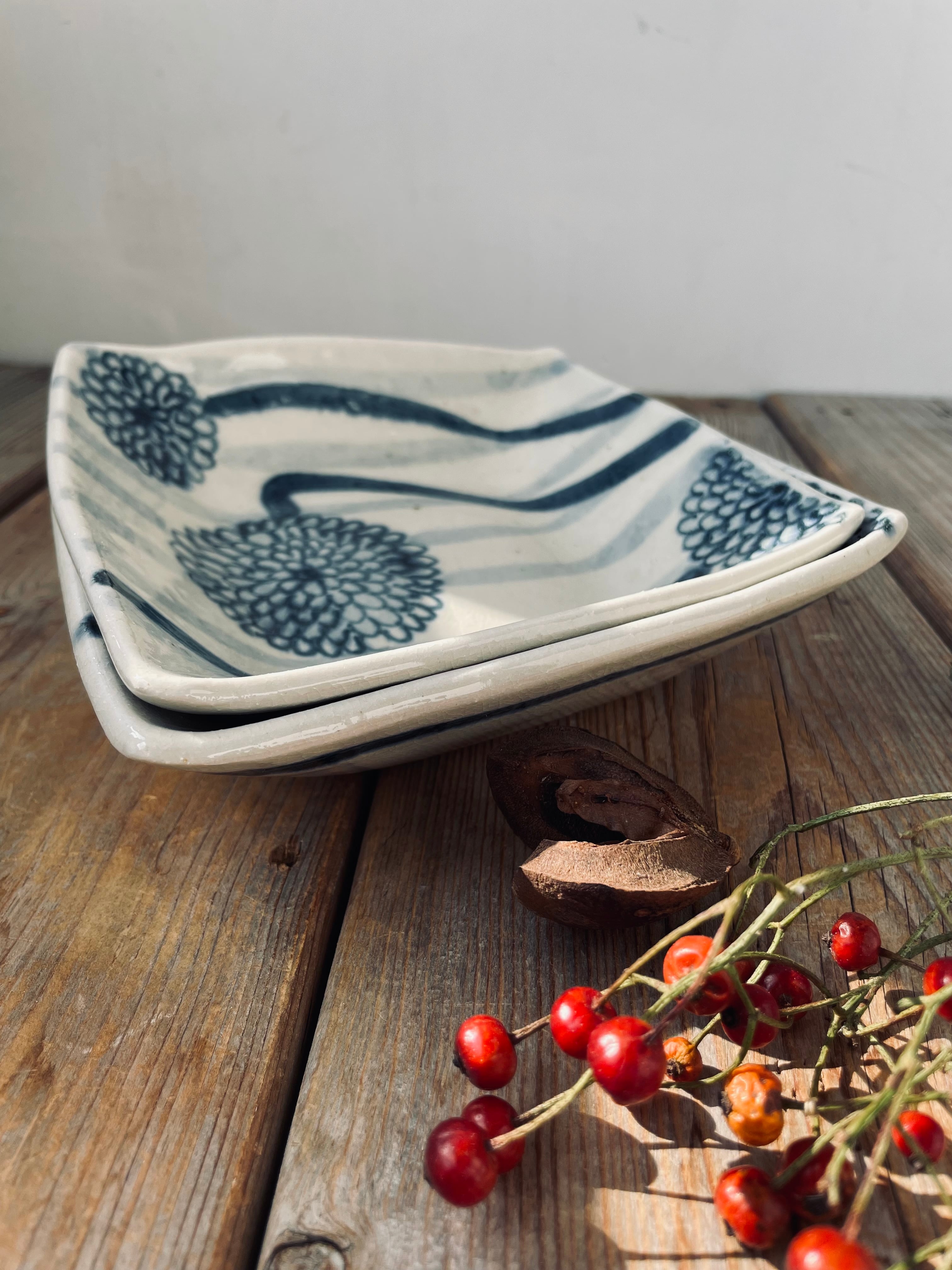 ひし形の形と、絵付けが一段とお料理を素敵にしてくれます。