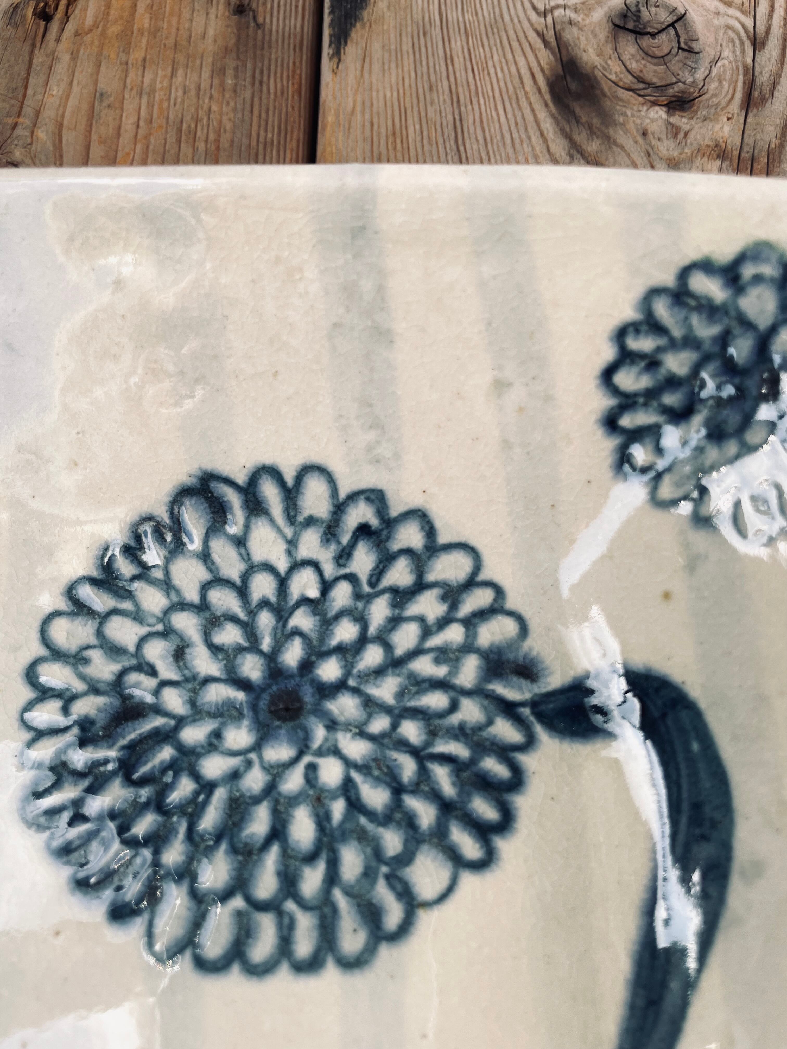 手描きの染め付けが、何とも味のある可愛いお花の器です。