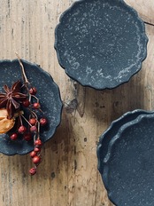土の温かみを感じながらも、どこか無機質な洗練されたデザインと、マットなざらりとした質感の釉薬が、食卓をより上質な物に彩ります。