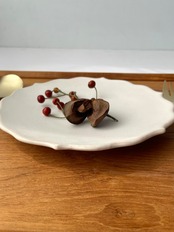天龍窯 凛花6寸皿 ホワイト、ターコイズ