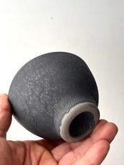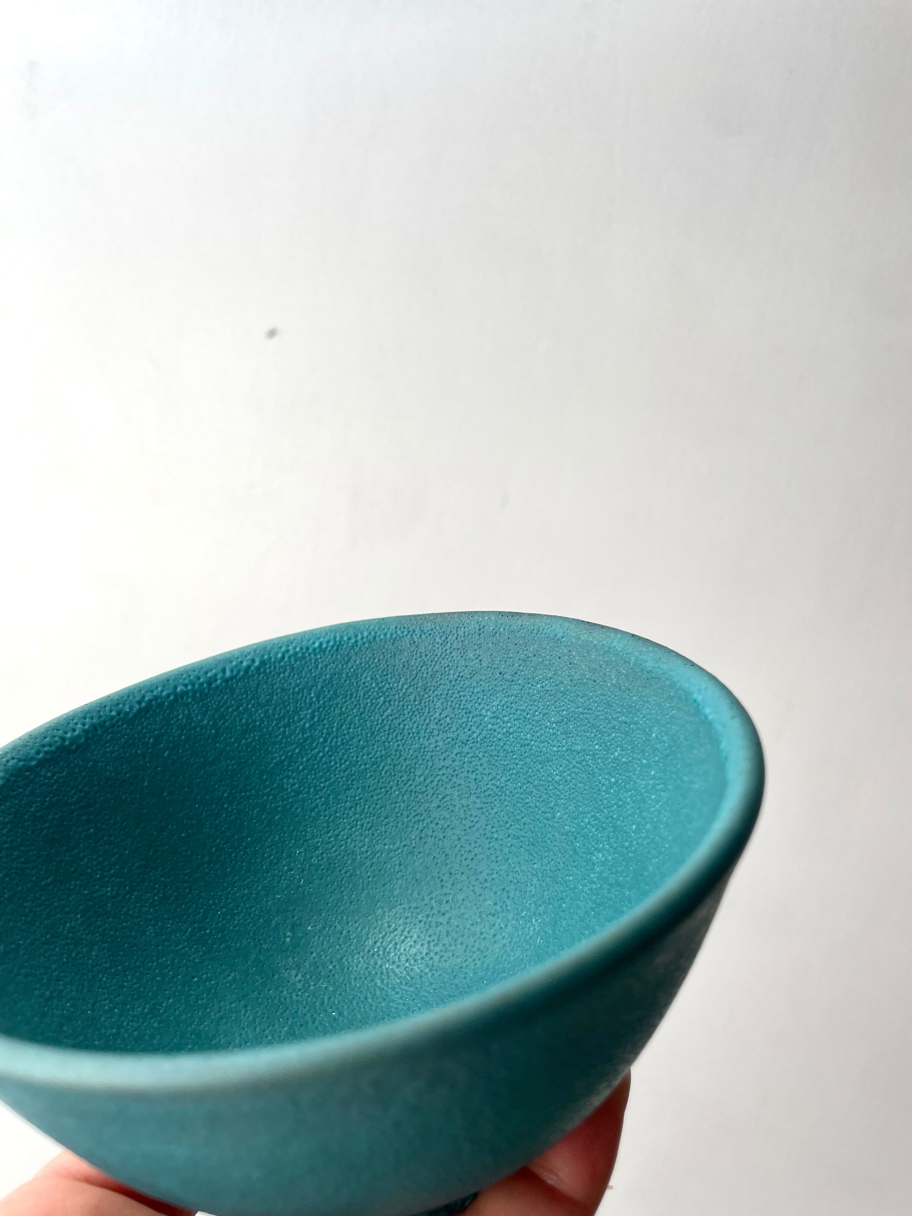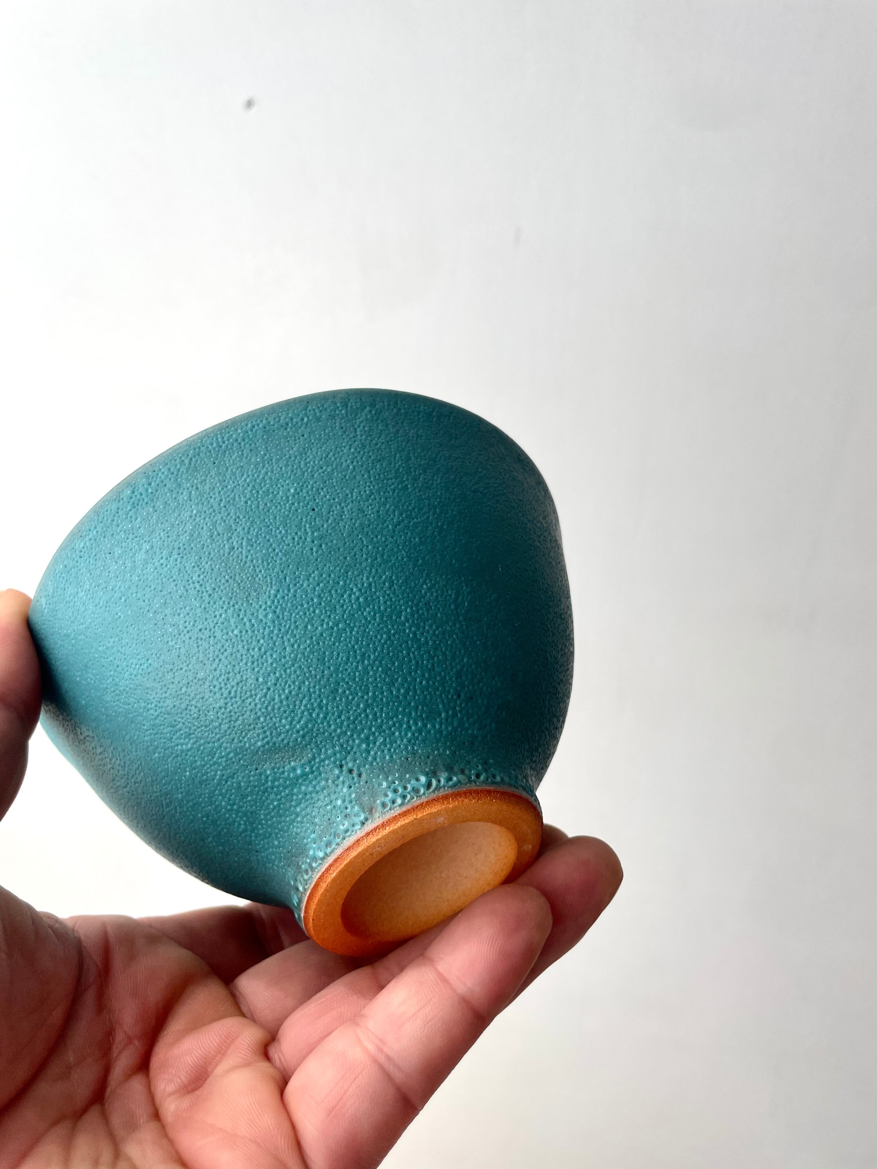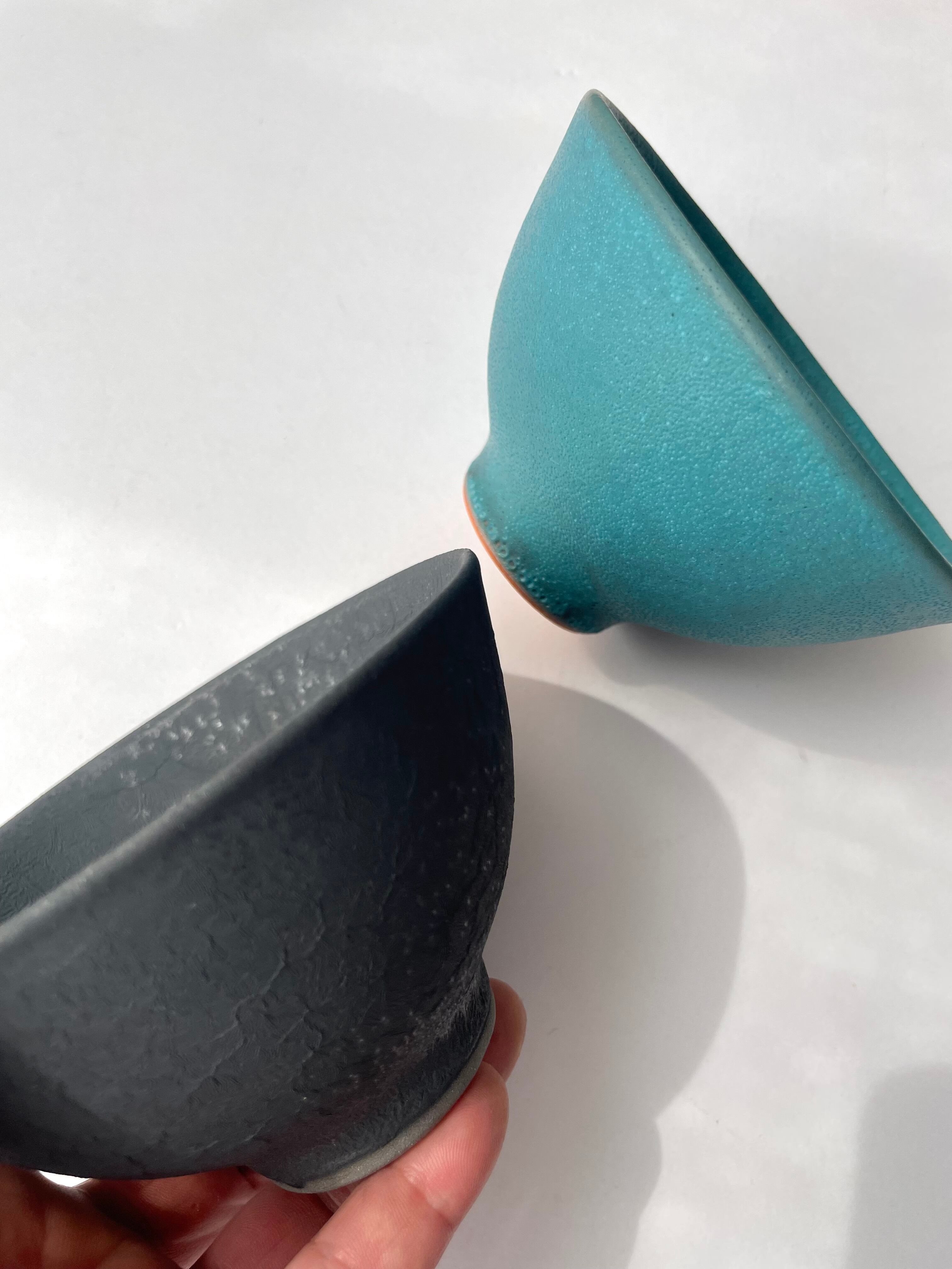 土の温かみを感じながらも、どこか無機質な洗練されたデザインと、マットなブラックとターコイズの釉薬が魅的。