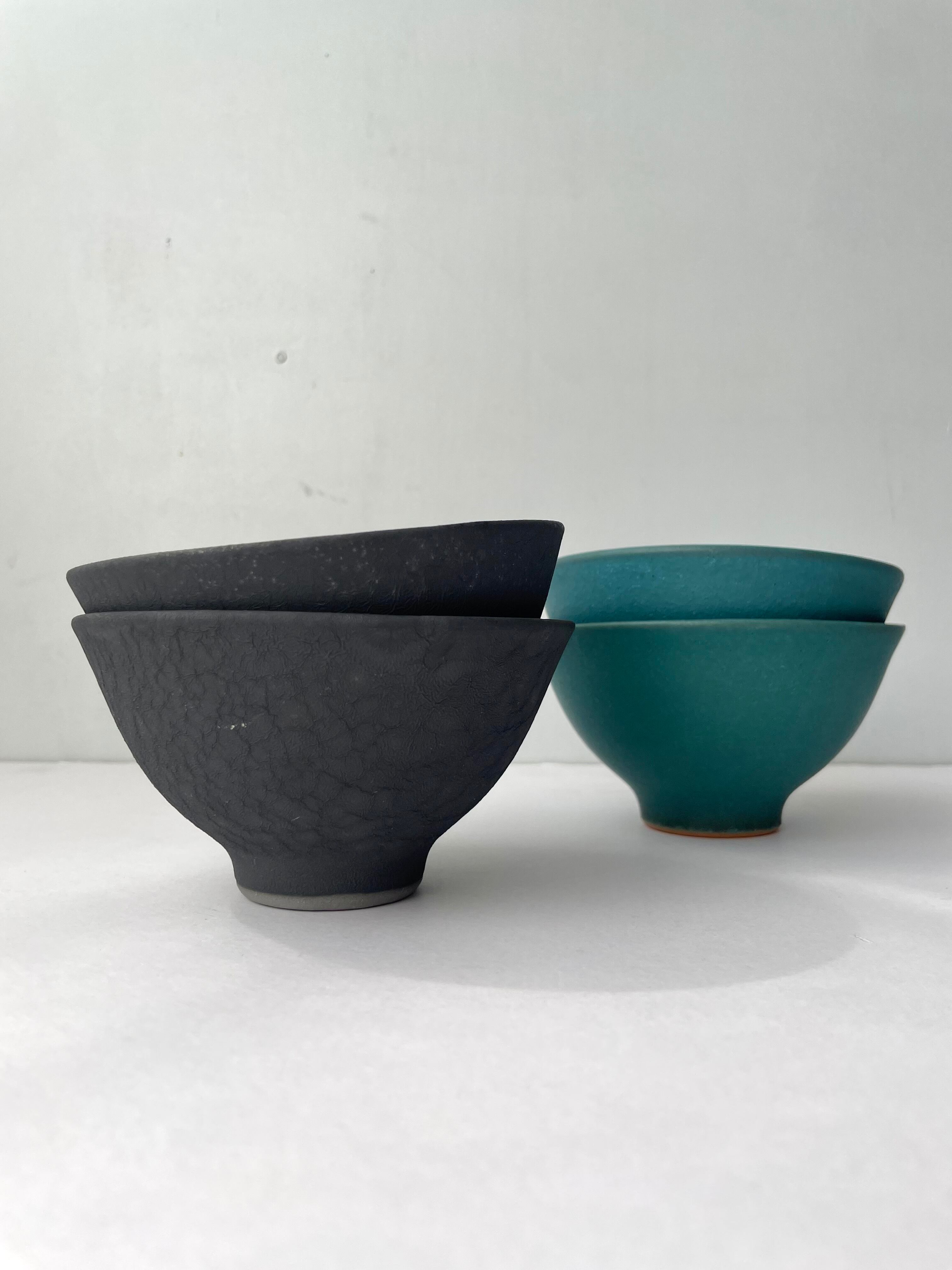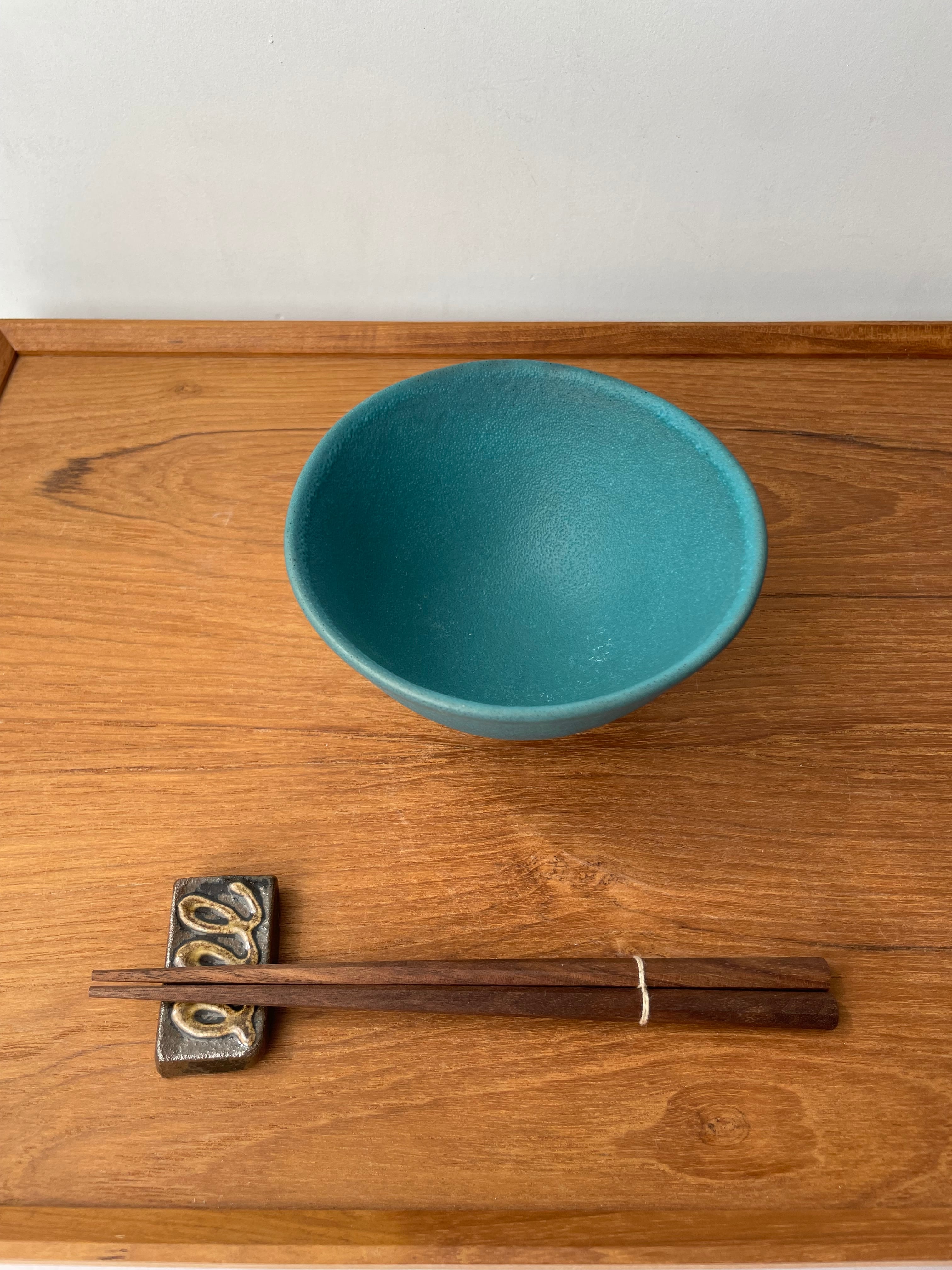 天龍窯 飯碗 ブラック、ターコイズ
